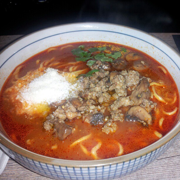 The broth was magical. Think of a flavorful tomato sauce at a badass Italian restaurant, seasoned with ripe crushed tomatoes, simmered for hours, sprinkle in some oregano, basil, parsley, and then make a RAMEN BROTH out of it. Truly inspired.