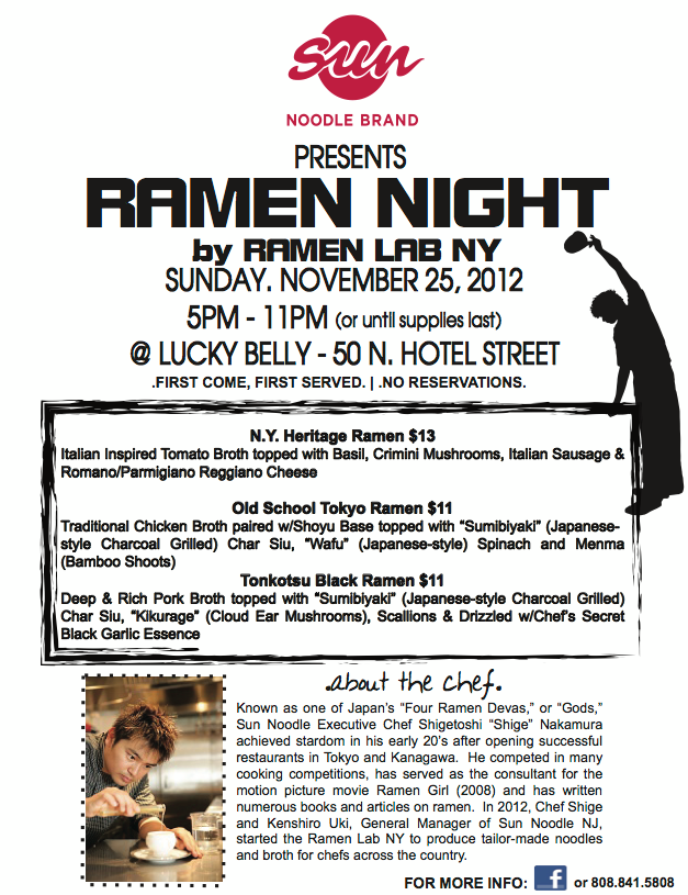 This was a huge foodie weekend for the vivacious Hawaii food scene! The Pig and the Lady Noodle Bar at Taste on Saturday night and Chef Shige Nakamura of Sun Noodle fame serving a one-night-only ramen extravaganza (“No Ramen, No Life” by Ramen Lab NY) Sunday Night at Lucky Belly rounded out this amazing weekend!